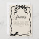 Ajoutez une touche d'élégance à votre table de cadeaux avec notre panneau de signalisation des faveurs à ruban noir Coquette. Présentant un ruban coquette élégant avec des fantômes/chapeaux de sorcière et les mots "Faveurs" ainsi que "Prenez-en un ! Merci de célébrer avec nous", ce panneau de table est un moyen charmant de guider vos invités.