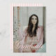 Ce style de conception annoncé par la fête de remise de diplômes pourrait être décrit comme étant un style de conception de la petite-génération ou de coquette. Il est doté d'une crête d'aquarelle avec un ruban rose clair et un capuchon de graduation sur le dessus. Vous pouvez personnaliser avec une initiale et une photo.
