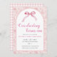 Invitation Coquette Toile rose Bow 1er anniversaire fille