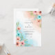 Delicate watercolor washes in soft coral and sky blue create a dreamy backdrop for vibrant blossoms. Lush green foliage intertwines with charming floral elements, evoking a romantic and whimsical mood for your special day. This artistic arrangement lends a touch of nature's beauty.