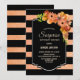 Bande de corail noir et faux parties scintillant rayé floral surprise invitation dîner fête d'anniversaire.