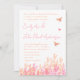 Invitation Coral & Fuchsia Flower Bumble Bee Wedding Invite