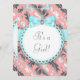 Invitation Coral Turquoise Bleu et Gris Bébé Fille Douche