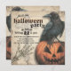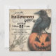 Corbeau sur une Jack-o'-lantern avec support en papier déchiré et une main squelette ornent l'avant de cette invitation personnalisable de fête d'Halloween. La croix celtique fanée apparaît dans l'arrière - plan. Un regard éffrayant pour une grande fête hantée ! L'envers de cette invitation de fête d'Halloween présente la même illustration mais est retourné. Bonne fête !