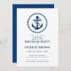 Elegant marine bleu et blanc bateau's wheel anchot personnalisable invitation fête d'anniversaire.