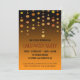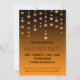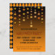 Invitation de fête d'Halloween avec des lanternes de jack o' sur des cordes avec un dégradé dramatique orange et noir arrière - plan. De l'autre côté de la carte se trouve un motif à damiers noir et orange.