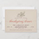 Cette invitation classique présente une illustration de cornucopie ainsi qu'une élégante typographie d'orange brûlée et de marron à des amis invitations et à la famille pour le dîner Thanksgiving. Comme à l'avant, le dos a un aspect papier parchemin classique.