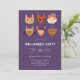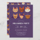 Carte modèle d'invitation à la fête d'halloween mignonne et amusante avec illustration dessinée à la main de chats en costumes.