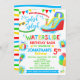 Waterslide Children Birthday Bash Invitation, schéma de couleurs primaires adapté à tout âge. Ajoutez du texte à la conception. Pour des modifications supplémentaires (couleur de police, style de police, supprimer ou déplacer des éléments, changer d'autre libellé *le mot WATERSLIDE n'est pas modifiable), cliquez sur personnaliser, faites défiler vers le bas et cliquez sur le lien "Editer à l'aide de l'outil de conception". ** Veuillez consulter la collection complète pour l'invitation correspondante, les étiquettes et la signature disponibles**
