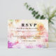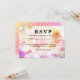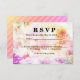 Printemps, été ou automne RSVP et carte menu. Couleurs abstraites à l'avant. De belles couleurs orange, violet et rose se mélangent dans cette oeuvre. Des rayures diagonales aux couleurs pastel orange, rose et violet sur le dos. D'autres produits mariages sont disponibles par l'intermédiaire de cette boutique. Conception de transfert pour d'autres produits.