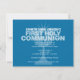 Faites une déclaration avec cette invitation à la première sainte communion aqua qui est assez polyvalent pour un garçon ou une fille. La typographie audacieuse fait ressortir le nom de votre enfant. Le "O" dans "Communion" est remplacé par une croix graphique pour intérêt visuel. Le texte surimprime un filigrane d'une tasse de communion avec un arrière - plan aquamarin. Disponible avec des produits correspondants.