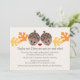 Deux glands sourient joyeusement et amoureusement sur ces couples mignons et drôles d'invitations wedding showers parfaites pour une douche à thème automne ou automne. feuilles de chêne orange et jaune et arrière - plan motif de crème polka. Oeuvre © Chrissy H. Studios, LLC.Tous droits réservés.