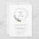 Notre faire-part de mariage Greenhouse vous propose des noms encerclés par une couronne géométrique moderne de fils de fausse feuille de cuivre, de feuillage botanique vert, de feuilles et de minuscules fleurs blanches. Personnalisez cette faire-part de mariage botanique moderne et élégante avec vos détails mariages sous le lettrage noir chic sur un arrière - plan blanc immaculé pour une déclaration simple.