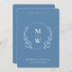 Invitation Couronne Bohème Monogramme Fleurs Mariage Bleu Pou