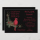 Un beau Cardinal rouge gazouillant les détails de l'invitation à la soirée à potluck. Trouvez plus de détails au dos de l'invitation avec un thème de baie de houx.