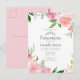 Cette jolie invitation de Quinceañera en carton postal au thème floral rose blush présente de jolies fleurs aquarelles et des feuilles vertes au-dessus d'une couronne argentée scintillante. Une invitation féminine et girly pour les 15 ans de votre adolescente. Des pivoines flirtant et féminines créent une jolie bordure autour de l'élégant script gris.