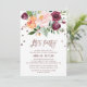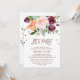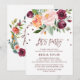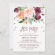 Cette carte d'invitation en forme de couronne de fleurs d'automne à l'encre dorée rose "Let's Party" est parfaite pour un événement ou une fête d'été ou d'automne. Le design présente un magnifique bouquet de fleurs de couleur rose saumon, pêche orange et bordeaux marsala avec une typographie en feuille d'or rose et des confettis. Le dos présente une superbe couronne de fleurs avec les mots "Let's Party".