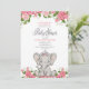 Invitation à une baby shower pour bébé fille avec un adorable éléphant princesse rose portant un diadème argenté et entouré de fleurs roses. Contactez-nous pour obtenir de l'aide sur la personnalisation ou pour demander des produits assortis.