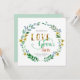 Couronne florale aquarelle dessinée à la main avec marguerite jaune et petites fleurs et feuilles bleues, avec le message "L'amour grandit ici" parfait pour les autocollants de produits, les autocollants de mariage, les autocollants de shower de mariage, les autocollants d'annonce de grossesse, les autocollants d'anniversaire de bébé. Le message, les noms et la date peuvent être facilement modifiés et personnalisés.