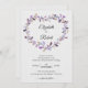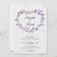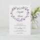 Elégant et joli assortiment violet, feuillage rose forme coeur de couronne mariage des cartes d'invitation pour votre occasion spéciale! Customisez vos coordonnées du mariage, votre date, votre lieu et plus encore au premier plan. Conçu pour coordonner avec notre couronne florale | Collection d'invitation mariage moderne et événement.