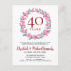 Cette carte d'invitation pour les 40 ans de mariage comporte une délicate guirlande de fleurs et de verdure faite de fleurs sauvages, de plantes et de papillons. L'invitation peut être facilement personnalisée avec vos informations d'anniversaire de rubis spéciales. Le verso de l'invitation comporte une guirlande florale assortie encadrant les dates d'anniversaire en élégant texte blanc sur fond rouge rubis. Les fournitures et la papeterie pour la fête assorties sont disponibles dans la collection "40 ans de mariage Fleurs roses".