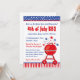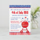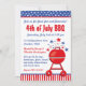 Conception patriotique comportant un gril rouge de barbecue avec des feux d'artifice. Frontière d'étoile ou étoile et frontière de rayures. Créez l'invitation parfaite pour votre prochaine réunion patriotique de barbecue ou de famille sur 4 juillet, le Jour du Souvenir, la Fête du travail ou n'importe quelle partie d'été. Affranchissement, casquettes, T-shirts, sacs, tasses et plus assortis ! Frontières et texte complètement personnalisables de conception. Original de PinkInkArt !