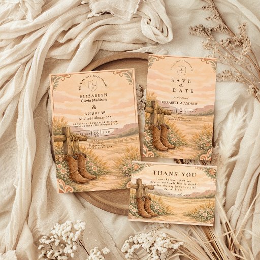 Invitation Cowboy Boots Desert Wedding