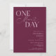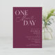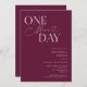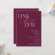 Dîner de répétition minimaliste mariage avec un texte de typographie qui dit "un jour de plus". L'arrière - plan est la canneberge.
