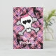 Invitation Crâne rose et os croisés avec les coeurs et les co