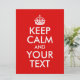 Créez une invitation de fête d'anniversaire personnalisée avec une parodie de l'affiche classique "Keep Calm and Carry On". Vous customisez ou personnalisez avec différents styles de police, une couleur arrière - plan différente, même une couleur de police différente. À l'arrière, il y a du texte rouge tandis qu'à l'avant, il y a un arrière - plan rouge avec une couronne et une police blanches.
