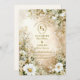 Un élégant design mariage d'inspiration vintage avec des lys en ivoire disposés dans un cadre fleuri romantique aux accents dorés ornés. La palette crème douce et or ajoute une sophistication intemporelle, parfaite pour des célébrations classiques, formelles ou d'inspiration jardin