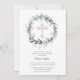 D'élégantes invitations au baptême comportent une élégante couronne d'aquarelle de feuilles verts sauge et de bourgeons de fleurs gris argent autour d'une croix rose. Idéal pour votre occasion spéciale, il suffit de customiser avec le nom de votre enfant et les détails de l'événement. Objets CORRESPONDANTS disponibles dans notre collection.