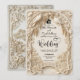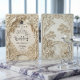 Invitez vos invités à entrer dans un monde de romance intemporelle avec un design qui rappelle les jardins des domaines européens du XVIIIe siècle. Cette suite capture la grandeur d'un lieu historique à travers une narration visuelle complexe, établissant un ton sophistiqué pour vos prochaines noces. La palette neutre assure une intégration harmonieuse avec n'importe quel schéma de couleurs de mariage formel tout en conservant une atmosphère de luxe discret. Il s'agit d'une carte plate et imprimée sur du papier lisse qui simule la texture visuelle d'un bas-relief sculpté tridimensionnel. Le design présente une palette monochromatique ivoire et beige avec l'apparence de la pierre sculptée. Une arche baroque détaillée, drapée de grappes de glycine et de vignes de lierre grimpant, encadre le texte central. Éléments de la scène : À l'intérieur de l'arche, un paysage pictural représente un pont de pierre romantique traversant une rivière calme, entouré d'arbres de jardin. Deux colombes blanches sont perchées sur les branches supérieures de l'arche. Typographie : Les noms des mariés sont rendus dans un script calligraphique orné de fioritures en forme de cœur, tandis que les détails de l'événement apparaissent dans une police serif noire tradition