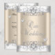 Invitation Crème Mariage Argent Coeurs Diamants Blancs
