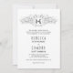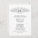 Vintage crête héraldique grise avec initiales faire-part de mariage. Il présente un cadre floral avec votre monogramme dans une crête héralique et des fleurs, feuilles et grenades. Le fond est recouvert de motif pois gris et blanc.