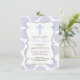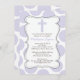 Cute invitation du Baptême avec une croix violette sur un cadre chic et chic sur un arrière - plan populaire à pois violets. Retournez notre invitation moderne au baptême pour trouver une pochette violette et blanche assortie. Idéal pour un baptême ou un baptême de bébé contemporain. Disponible dans notre boutique en différentes couleurs pour un petit garçon ou une petite fille.