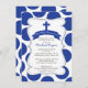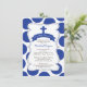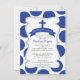 Cute First Holy Communion invitation avec une croix bleue sur un cadre chic et élégant sur un arrière - plan populaire de polka bleu marine. Retourner notre invitation de communion sainte des garçons modernes pour trouver une pochette bleue et blanche assortie pointée en arrière. Parfait pour une communion contemporaine de petits garçons. Disponible dans notre boutique en différentes couleurs pour un petit garçon ou une petite fille.
