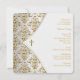 Elégante croix blanche et or avec le baptême bébé damassé or et modèle d'invitation au baptême. Ce design élégant, blanc et or, s'applique à un garçon ou une fille.