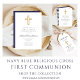 Personnalisé Navy Croix Bleue Photo Boy First Communion Invitation. Une partie de la suite de collection de la première communion de la Marine Bleue de la Croix Religieuse avec papeterie et accessoires de la première communion.