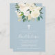 Invitation Croix Bleue Dusty aux fleurs de crème, baptême de