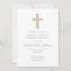 Personnalisée Croix Bleue Dusty Photo Boy First Communion Invitation. Partie de la Suite de première communion Dusty Blue Script Cross Boy avec invitation, papeterie et accessoires de première communion.