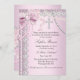 Filles Pretty Rose Première Communion ou Invitation Baptême. Elégant arc de bijoux avec perles et croix d'argent. Dentelle rose blanc argent. Veuillez noter toutes les images plates ! elles n'ont pas de véritable dentelle ou bijoux !