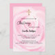Gros plan d'une rose rose rose, fleur douce et aquarellée. Personnalisez et ajoutez le nom de la future maman et les détails de la fête.