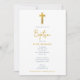 Invitation Croix d'or Script écrit à la main Baptême garçon