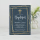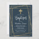 Invitation Croix d'or Script moderne Marine Bleu Garçon Baptê
