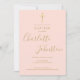 Une élégante invitation de baptême ou de christening avec une signature de nom à l'écriture chic. Personnalisez avec vos informations spéciales de baptême ou de christening en lettrage doré chic sur fond rose blush et code QR et détails de réception au verso. Conçu par Thisisnotme
