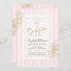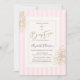 Invitation Croix dorée poussière de diamant rayures roses bap
