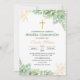 L'Invitation aimait les personnes à la première communion de votre enfant avec cette invitation ornée de feuilles verts et d'une croix. Parfait pour les garçons et les filles, cette invitation magnifiquement conçue donne le ton d'une célébration mémorable. Invita a tus seres queridos a la Primera Comunión de tus hijos con esta invitación adornada con hojas verdes y una cruz. Perfecta para niños o niñas, esta invitación bellamente maladie anunciará una Celación mémorable.