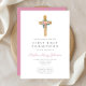 Invitation de première communion de fille de croix florale mignonne personnalisée.