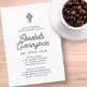 Composé d'une écriture cursive et d'une typographie sérif ; le tout sur un fond blanc. Une croix ornée décore subtilement la typographie. Ceci est une invitation funéraire ou mémorielle classique, simple, minimaliste et épurée.